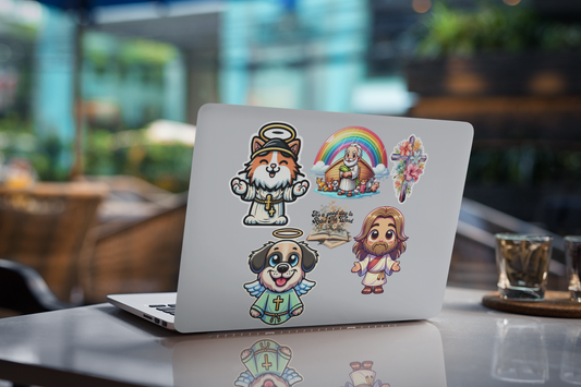 Caricatura de Jesús, pegatina de vinilo impermeable